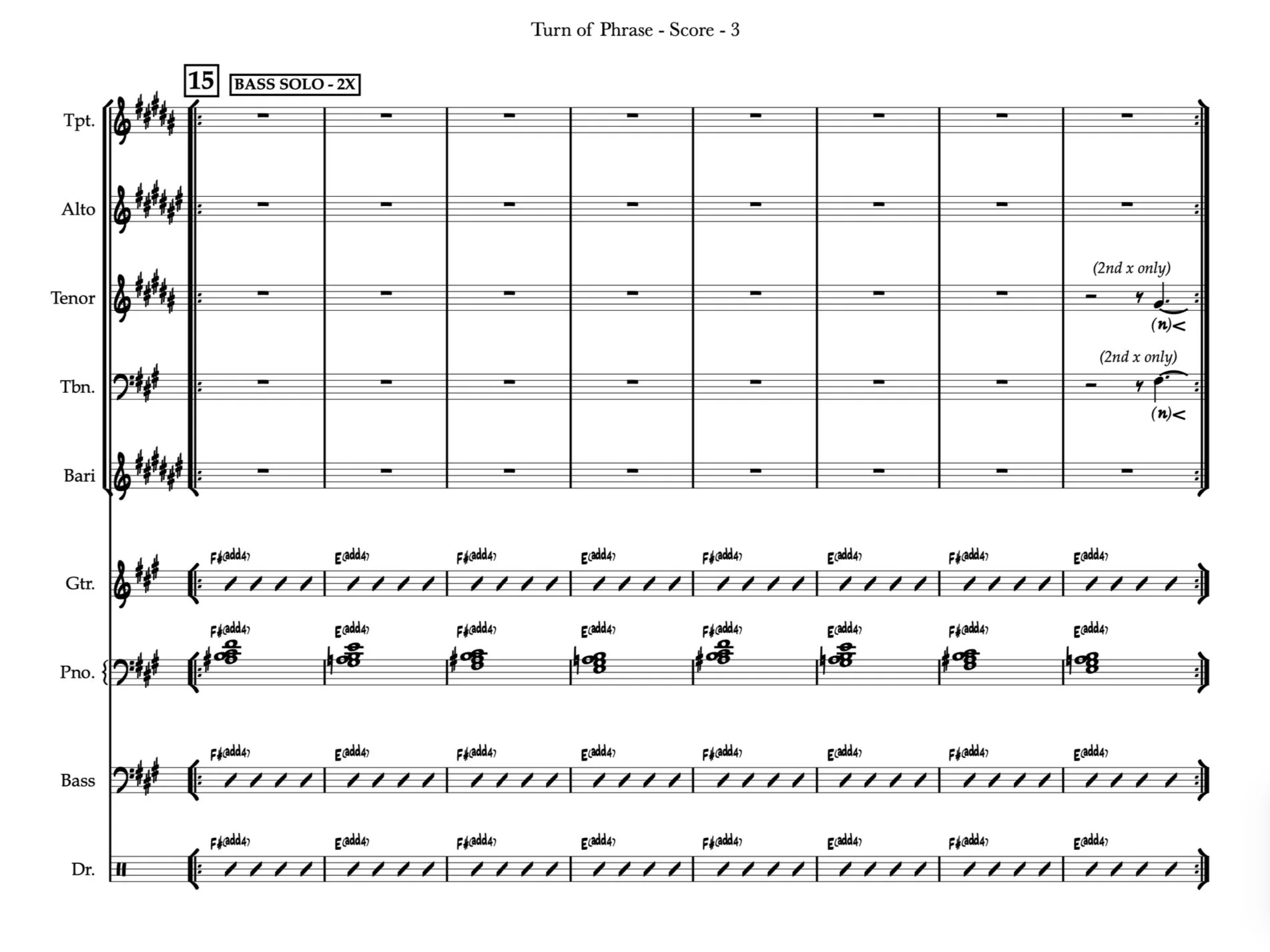 Full score and parts for Turn of Phrase from Frankenstein Sessions (2021). Your purchase arrives as a digital PDF via email.